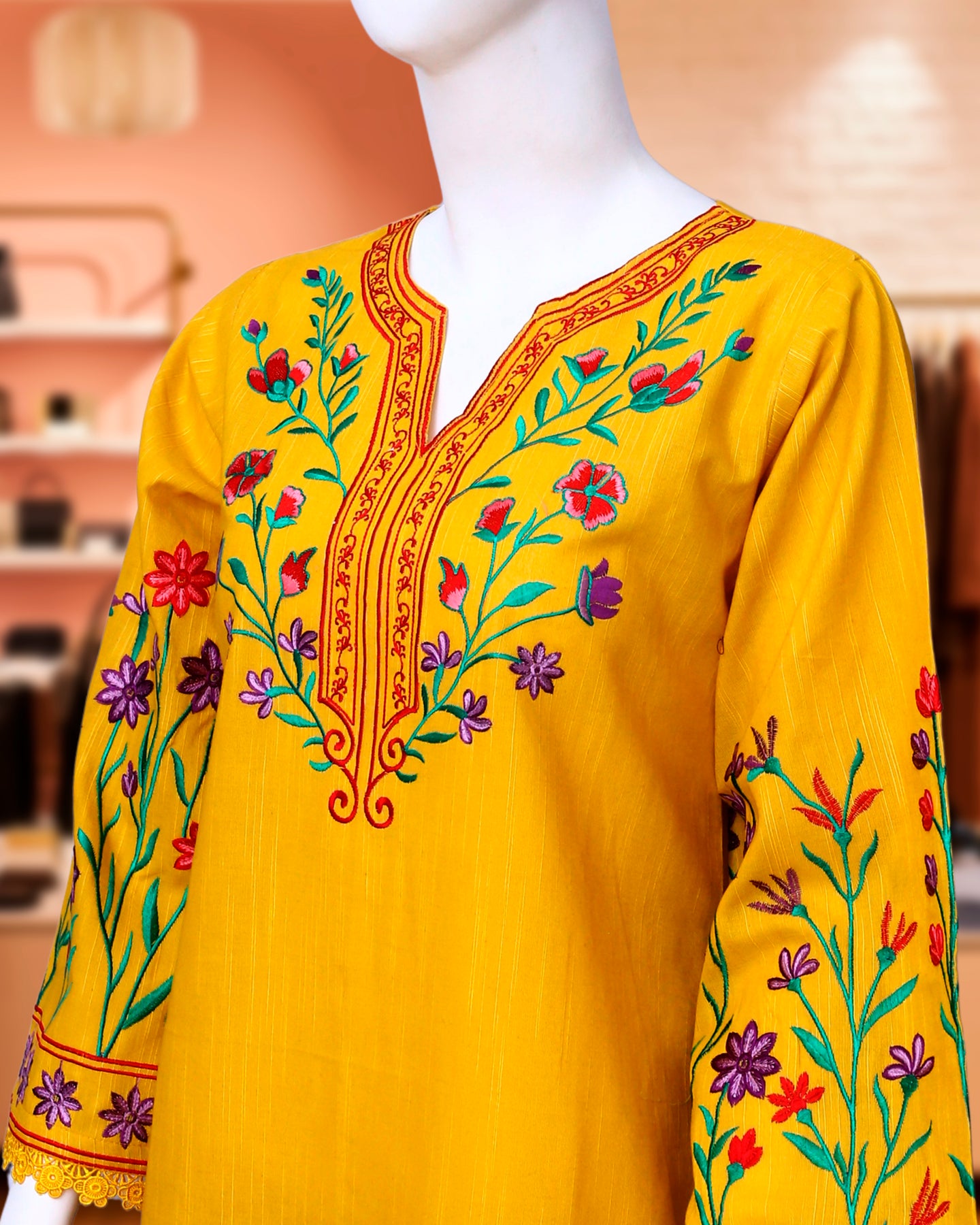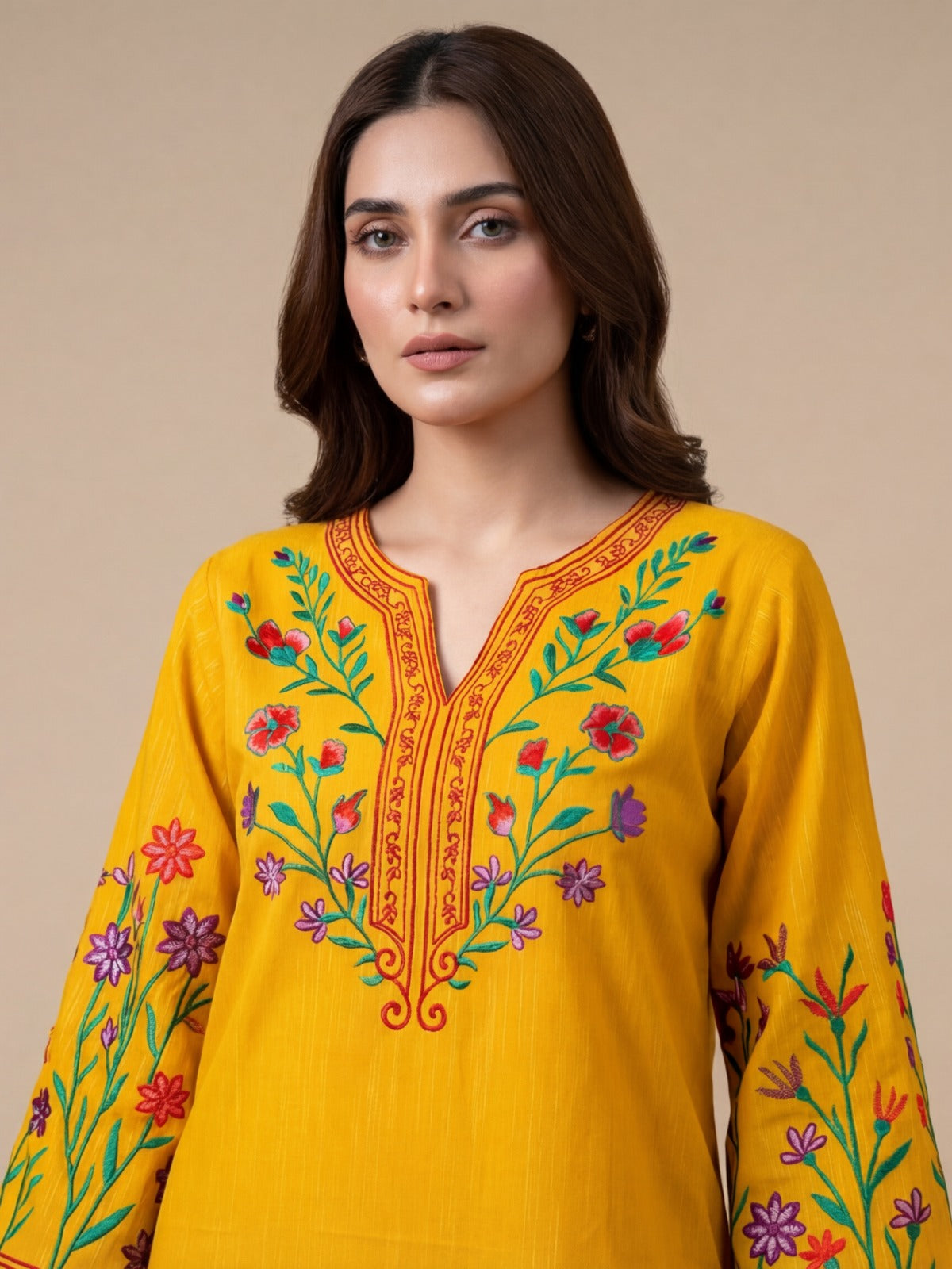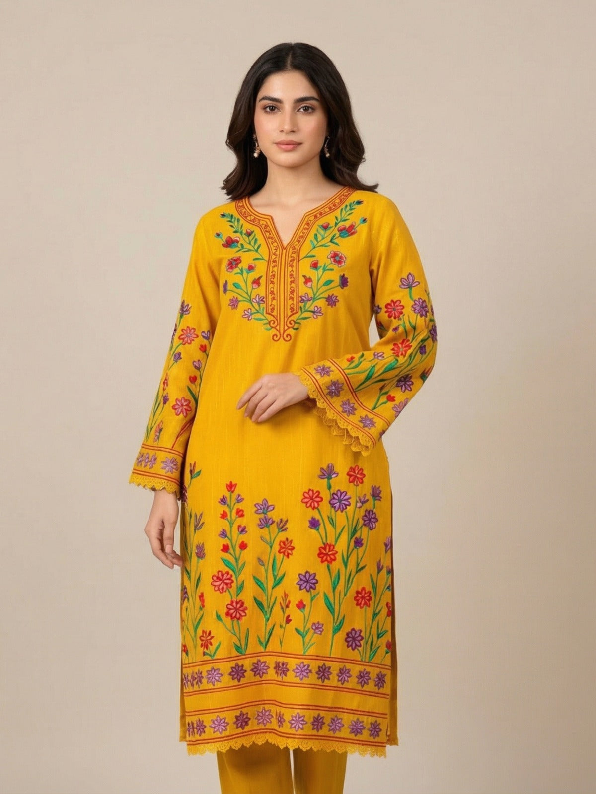 Bring brightness to your wardrobe with Jinan, made from premium-quality Khadar. Its vibrant yellow shade and cozy texture make it perfect for chilly days.